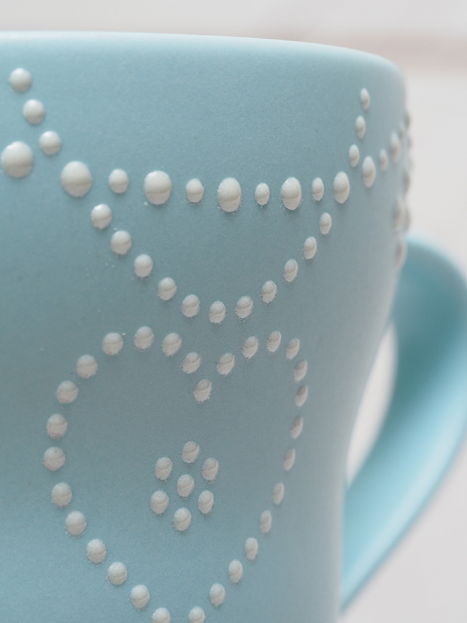商品名:もこもこ N1手 マグカップ 盛り転写(酸化焼成:水色マット)