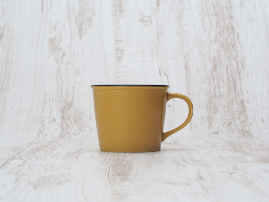 陶磁器製ホーロー風のマグカップです。