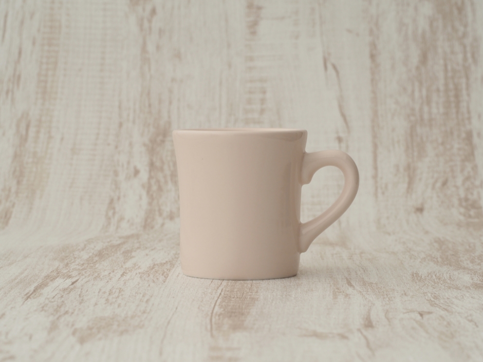 キネ型の形状が特徴のマグカップです。