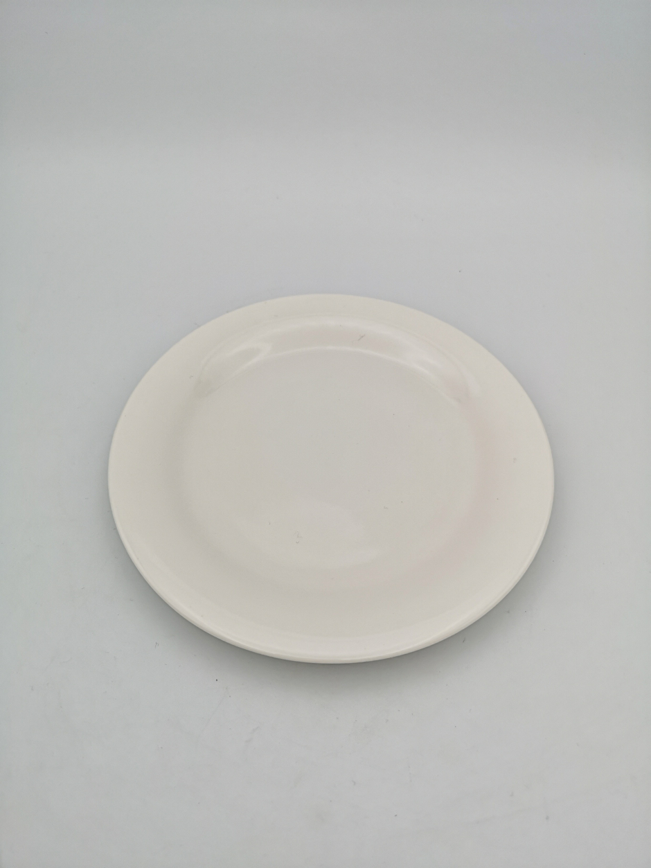 緩めのリムが付いたデザート皿サイズのお皿です。